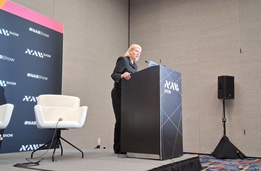 NAB Executive Vice President, Global Connections and Events, Karen Chupka, addressed journalists at the 2026 NAB Show. She described “storytelling” as a show theme, if not the theme, but that much of the discussion in the show’s preparation involved artificial intelligence. |